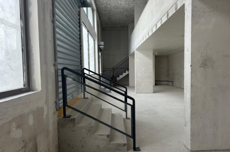 A charming workshop on the ground floor, complete with a kitchen, decorative library, stock room, private office, and bathroom.