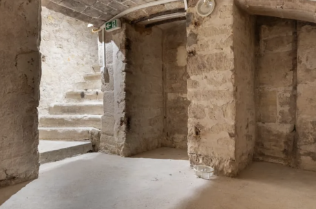 This retail space offers 25 sqm on the ground floor, featuring a stone wall running the full length of the premises, as well as two basement levels also finished with stone walls.